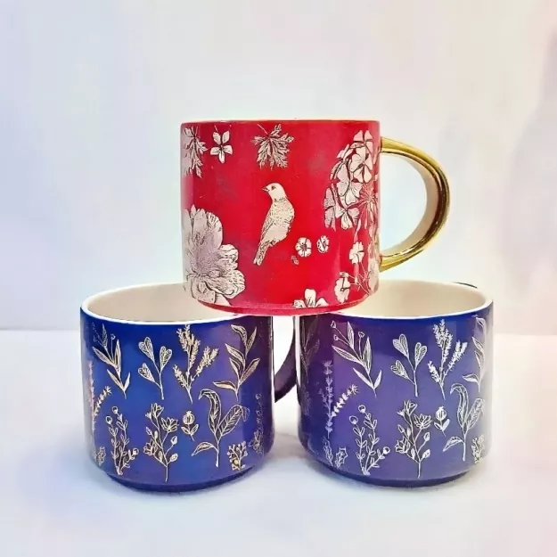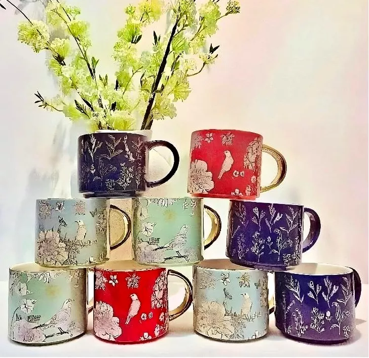 Cette tasse en céramique avec une poignée en or électropliée, méticuleusement fabriquée avec des décalcomanies, incarne un charme unique inspiré par la nature. Que ce soit les textures délicates des fleurs en fleurs, les formes vibrantes des oiseaux agiles ou les motifs captivants des blocs de couleurs naturels, la tasse capture délicatement les cadeaux de la flore, de la faune et des couleurs vibrantes. Pour s'adapter à chaque style, la poignée de la tasse est personnalisable. La version plaquée or brille d'une teinte dorée riche qui ressemble à 18 carats d'or, ajoutant une touche de sophistication. Il peut également être personnalisé selon votre couleur préférée.