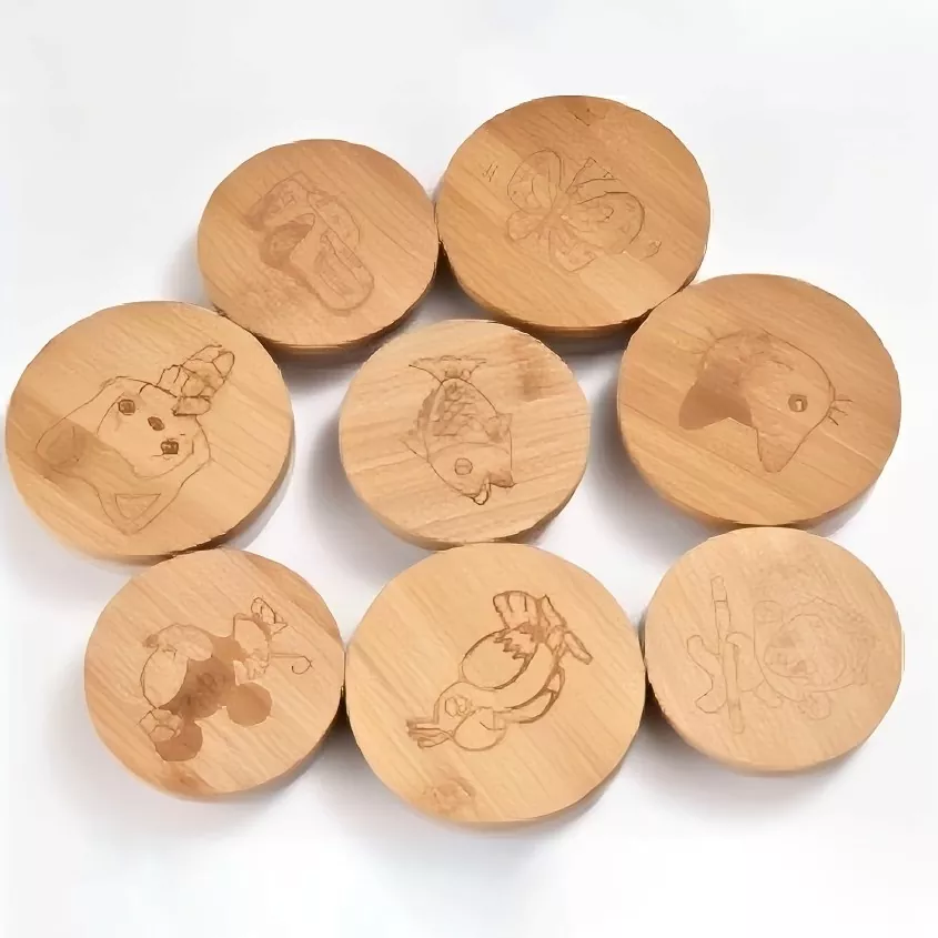 Les couvercles en bois écologiques personnalisés de BYF, spécialement conçus pour les bocaux en verre, sont à la fois pratiques et esthétiques. Fabriqué en bois naturel de couleur claire avec un grain clair et naturel, ils se sentent doux et confortables au toucher. Nous offrons deux options de conception: l'impression haute définition pour les couleurs vibrantes et les détails vifs, et la gravure laser pour une texture raffinée et des lignes élégantes. Nous offrons une large sélection de designs, y compris des designs amusants comme les petits animaux et les nombres, chacun imprégné d'une touche de détails faits à la main et de flair artistique.