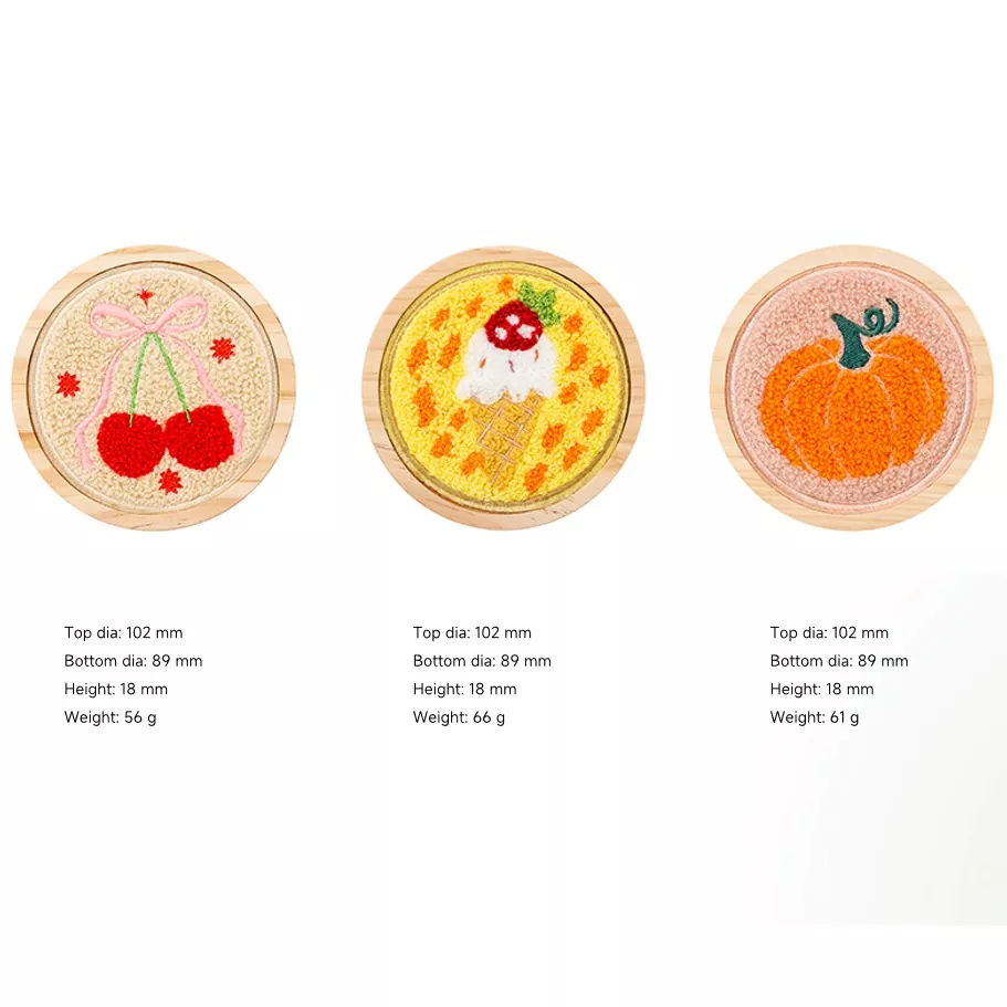 Nos jolies couvercles en bois respectueuses de l'environnement à la main sont conçues en morceaux en utilisant la technique de broderie. Ils présentent une grande variété de designs, chacun vivant et réaliste - vous serez en train de faire l'embarras du choix. Le motif de cerise est vibrant et adorable en rose et rouge, presque doux juste en le regardant. Le motif de crème glacée, avec sa combinaison jaune et blanc vibrante, est propre et rafraîchissant, apportant une fraîcheur d'été. Le couvercle de la citrouille est une orange dynamique, incarnant la chaleur de l'automne. Les accents rouges et bleus vibrants du couvercle de beignet sont animés et doux. Le motif de cocktail est un rose romantique, assez captivant. Le motif de citron, avec son jaune vif et ses notes de vert, dégage une ambiance vibrante, acidulée et douce.