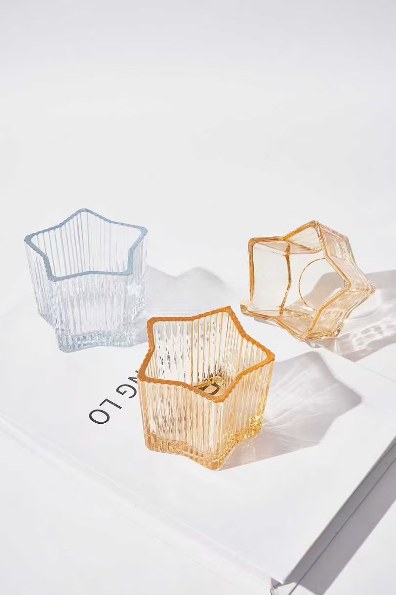 Le bougeoir en verre en forme d'étoile de BYF utilise des techniques de verre avancées. Les artisans professionnels élaborent méticuleusement la bougie à travers de nombreux processus complexes, notamment le soufflage, la coupe et le polissage, garantissant que chaque produit fini est de qualité exceptionnelle. Fabriqué à partir de verre pur et transparent, ses excellentes propriétés réfléchissantes de lumière permettent à la lumière d'une bougie allumée scintiller à l'intérieur en forme d'étoile, ressemblant aux étoiles de danse dans le ciel nocturne. Cela crée un effet de lumière et d'ombre captivant et unique, ajoutant une ambiance rêveuse à n'importe quel espace.